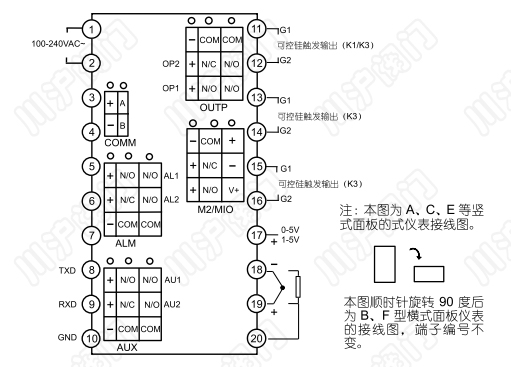 儀表后蓋端子排布如圖: